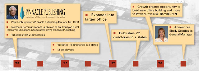 - Pinnacle Publishing, a telephone directory publishing company is formed as a division of Paul Bunyan Telephone